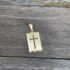 Pingente quadrado com cruz vazada no centro.