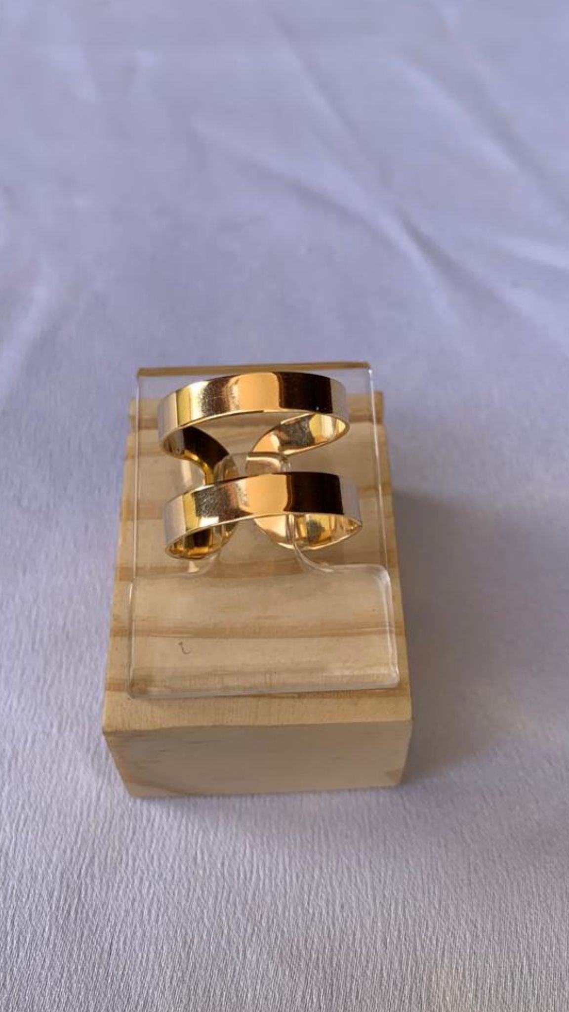 Anel ajustável largo com 2 filetes grossos banhados em ouro.