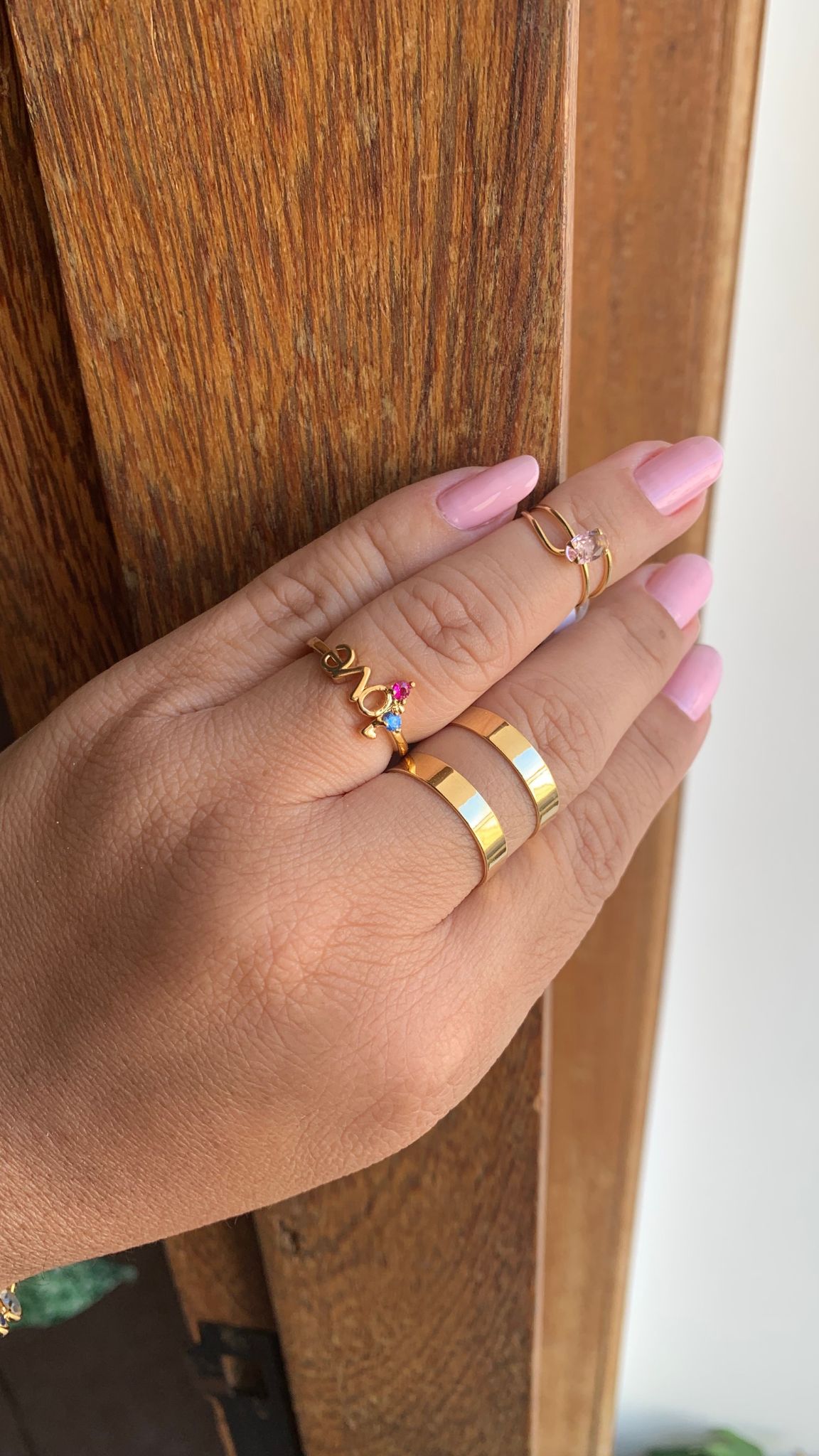 Anel falange com zircônia rosa e banhado em 10 milésimos de ouro.